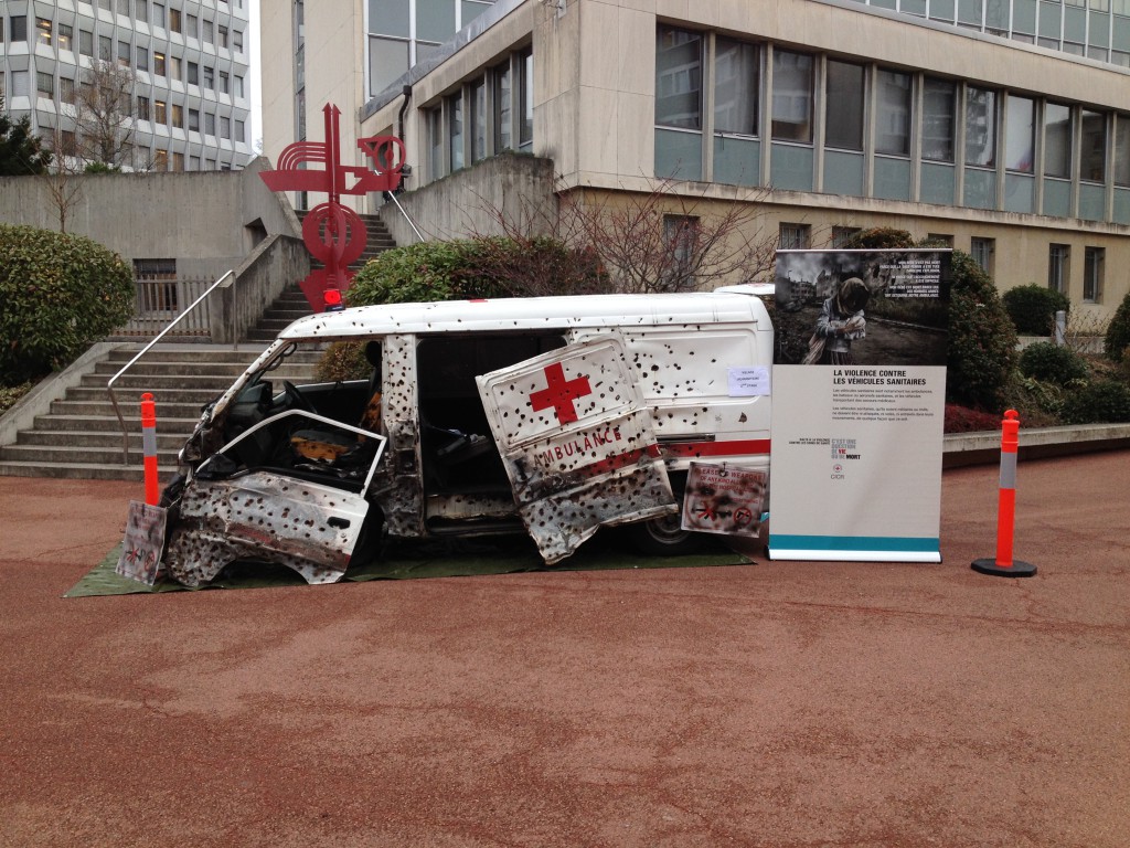 However, most international attention has been given to attacks against health workers, and against humanitarian aid work more broadly, in armed conflict and other setting of violence. Every four years the International Committee of the Red Cross, the National Red Cross and Red Crescent Societies and the International Federation of Red Cross and Red Crescent Societies and States Parties to the Geneva Conventions meet at the International Conference of the Red Cross and Red Crescent. In December 2015 at the 32nd International Conference, where the issue featured on the agenda, delegates shared some of their daily experiences. For example, a representative from Syria described how ambulance staff do not fasten their seatbelts when driving in conflict areas, so that they can evacuate the vehicle quickly – and drivers park so that passengers are able to escape and hide behind the vehicle for protection in case of an ambush.