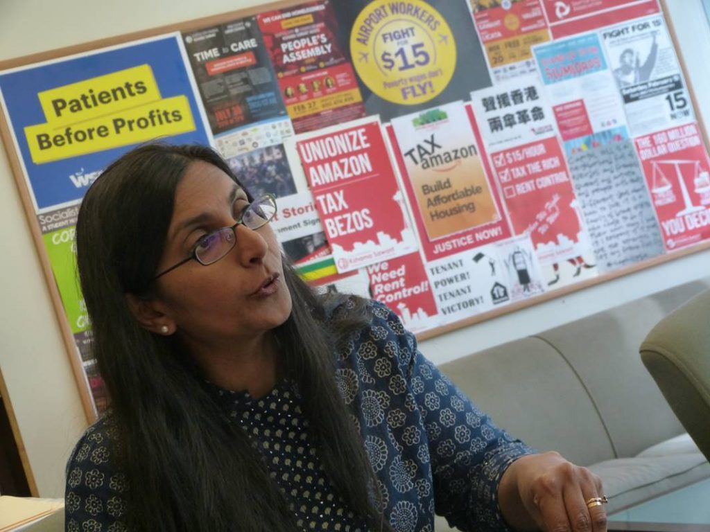 Bortsett från Bernie Sanders och ledamoten i representanthuset Alexandria Ocasio-Cortez från New York återfinns den mest synliga verkliga vänsterprofilen på andra sidan kontinenten, nämligen Kshama Sawant som sitter i stadsfullmäktige i Seattle. Hon representerar Socialist Alternative och har stångats med it-bjässen Amazon i flera år. I ett samtal på hennes kontor när jag arbetade med boken Vänstern i USA sa hon bland annat: