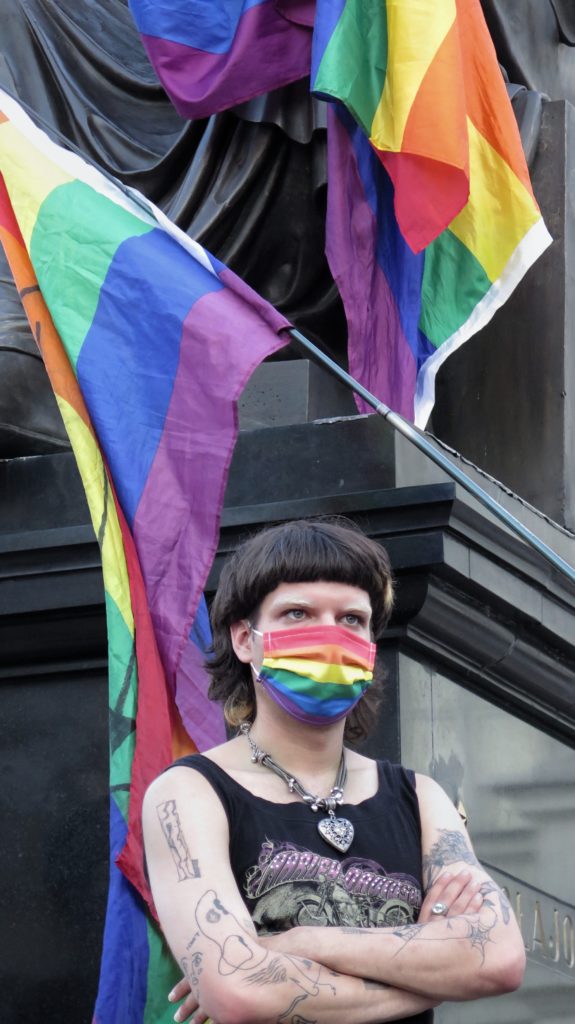 Margot’s calm determination seemed almost surreal. When asked in a radio interview about the ‘offensive performance’ of putting the rainbow flag on the statue of Jesus, she responded: “Let me explain again. Jesus Christ belongs to me, too. I am also a Christian, I’m not the kind of person who takes religion lightly. The New Testament is an important book for me. This wave of indignation we’re seeing has nothing to do with religious feelings, it comes from the internalised hatred towards LGBT people”.