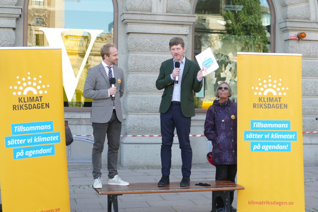 Jonas Bane, ordförande för Klimatriksdagen, och Martin Åhdal (C). Foto: Jan Lindblad
