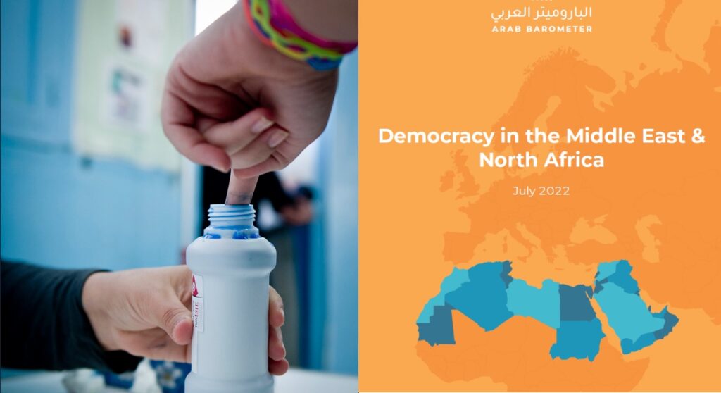demokratiska valen i regionen sedan 2011. Sedan följer Palestina (63%) där nationella val ständigt skjutits upp sedan 2006, och Libyen (61%), där två konkurrerande regimer strider om makten och nationella val ännu inte kunnat hållas. Den negativa synen på demokratins förmåga att främja ekonomisk utveckling omfattas av alla samhällsgrupper – unga som gamla, män och kvinnor, fattiga och rika.