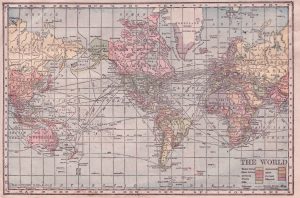 ”Hammond Cylindrical Projection World Map 1905” av perpetualplum Licens CC BY 2.0.