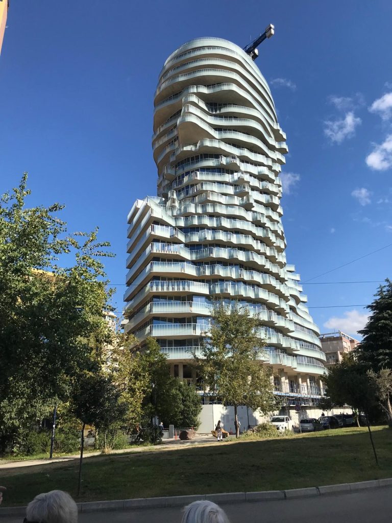 Bild: Ett av många spektakulära och spekulativa jättebyggen i Tirana. Foto: privat